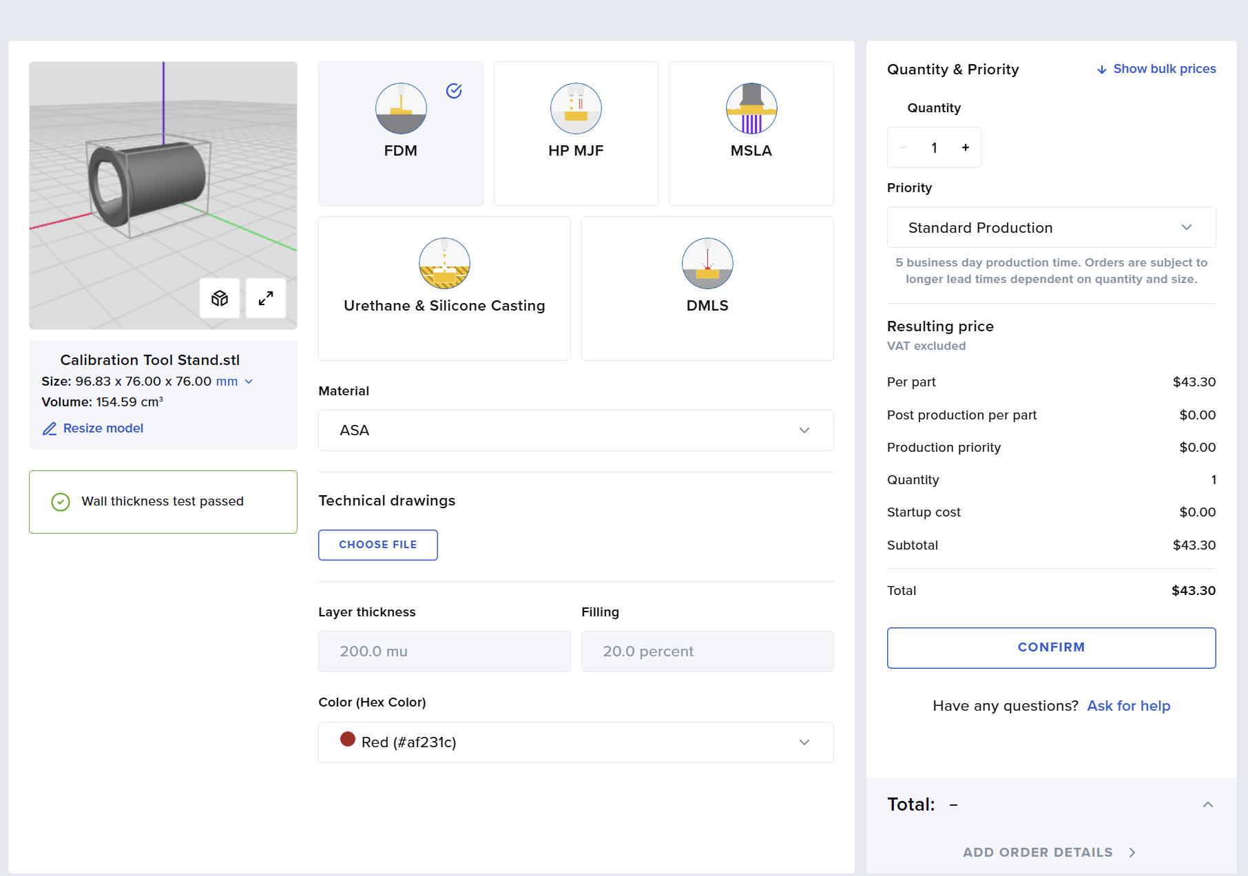 ✓ Price updates in real-time as you change materials, lead times, and other order specifications